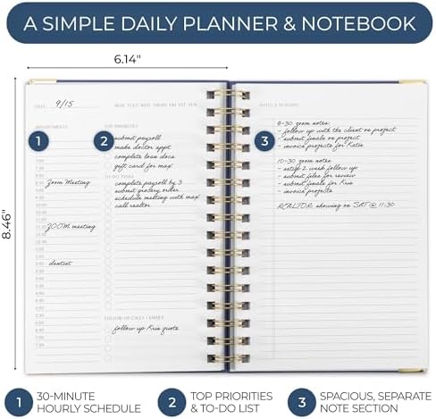 Stay organized and elevate your planning game with our Aesthetic Daily Planner and Notebook with Hourly Schedule. This beautifully designed spiral to-do list notepad is perfect for both work and home, helping you efficiently organize tasks and appointments with style. Featuring a chic and modern aesthetic, this planner is not just a functional tool but also a stylish addition to your school or office supplies.