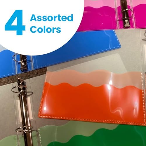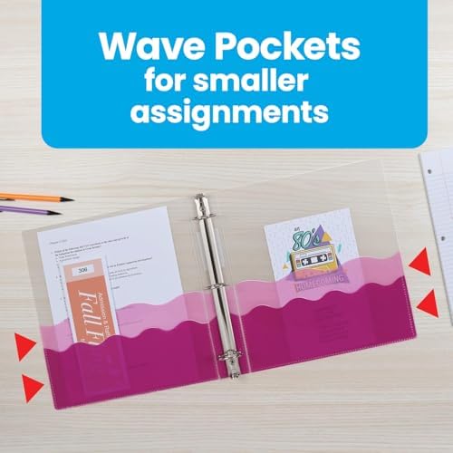 Oxford Wave Binders, Binders for School and Office, Strong Flexible Poly, 4 Wave Pockets, 4 Assorted Colors, Transluscent Covers, Holds up to 350 Sheets, 1.5 inch Binder, 4-Pack (91091)